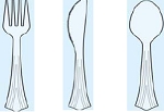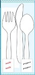 - 6 Piece Kit: Medium white forks, knives, spoons, napkins, salt & peppers; 250/Case Pack